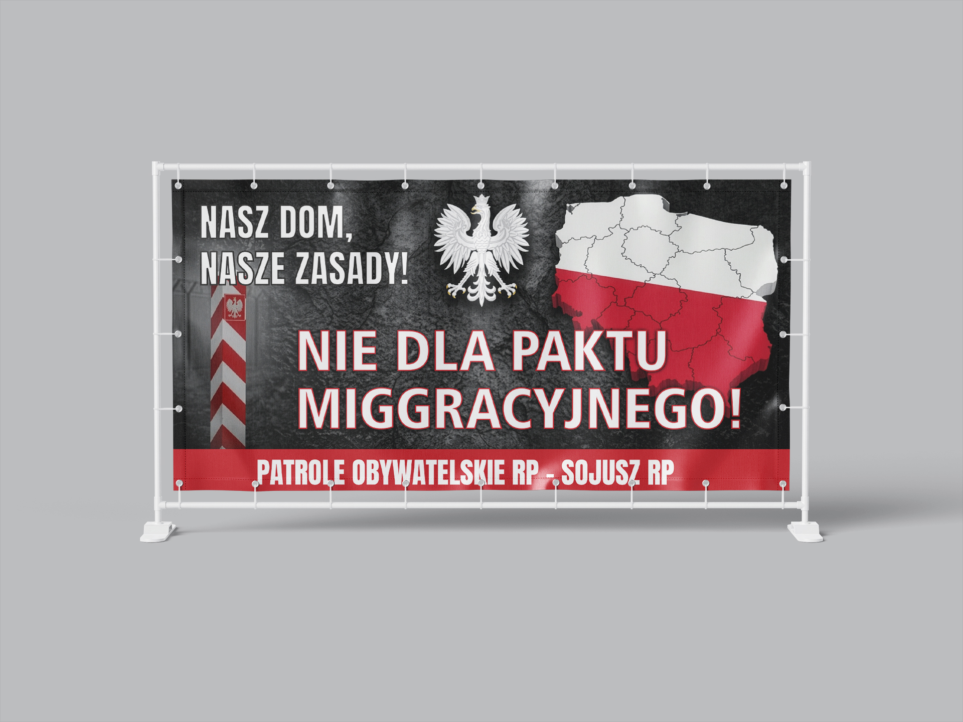 Baner Patriotyczny „Nasz Dom, Nasze Zasady – Nie dla Paktu Migracyjnego”